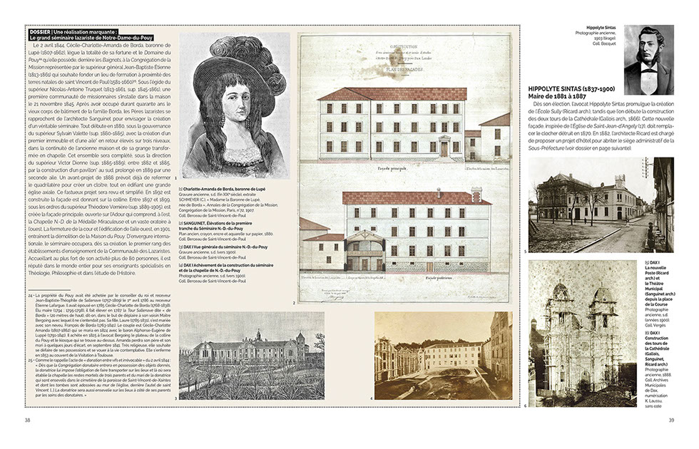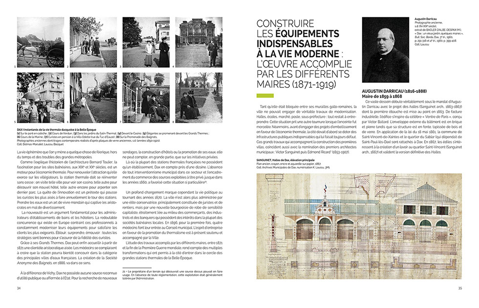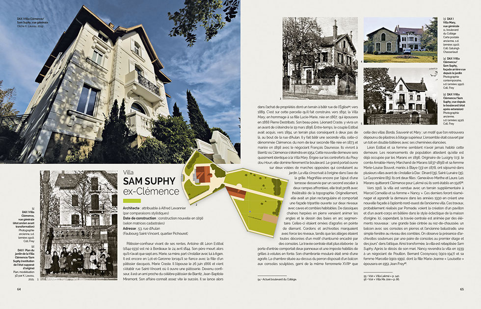 Tome 1 Tome 2 Un ouvrage d'une qualité exceptionnelle ! Un ouvrage d'une qualité exceptionnelle ! Historien de l’Art né à Dax en 1991, Kévin Laussu s’est très tôt investi dans la valorisation et la protection du Patrimoine. Passionné d’Histoire et de dessin, il débute en 2004 une étude sur le Grand Établissement des Baignots qui le conduit à se spécialiser sur le patrimoine thermal dacquois. Durant ses études universitaires en Histoire de l’Art et Archéologie, il s’est intéressé à l’architecture contemporaine des Landes et du Pays basque. Spéciste des notions de villégiature, de régionalisme et d’Art Déco, il a publié de nombreux articles et organise régulièrement des conférences et des visites sur ces thématiques. Aujourd’hui médiateur de l’Architecture et du Patrimoine, Kévin Laussu propose ses services de chercheur et de graphiste au sein de sa société «Malaye ! Patrimoines». Historien de l’Art né à Dax en 1991, Kévin Laussu s’est très tôt investi dans la valorisation et la protection du Patrimoine. Passionné d’Histoire et de dessin, il débute en 2004 une étude sur le Grand Établissement des Baignots qui le conduit à se spécialiser sur le patrimoine thermal dacquois. Durant ses études universitaires en Histoire de l’Art et Archéologie, il s’est intéressé à l’architecture contemporaine des Landes et du Pays basque. Spéciste des notions de villégiature, de régionalisme et d’Art Déco, il a publié de nombreux articles et organise régulièrement des conférences et des visites sur ces thématiques. Aujourd’hui médiateur de l’Architecture et du Patrimoine, Kévin Laussu propose ses services de chercheur et de graphiste au sein de sa société «Malaye ! Patrimoines». Philippe Dulau a travaillé à pendant près de trente ans dans le négoce international de verre plat pour la construction, la décoration et les vitraux. Il est administrateur et secrétaire de l’association « Les Années Folles de Biarritz – Lehengo Biarritze Famatua », association culturelle et artistique qui vise à célébrer la période des années 1920 qui ont marqué la côte basque et plus particulièrement Biarritz dans son histoire, son architecture et son mode de vie. Jérôme Zapata est guide en Pays basque, journaliste et auteur. Il travaille depuis plusieurs années sur l’architecture et a réalisé de nombreux dossiers sur des architectes majeures ayant marqué la Côte basque de leur empreinte (André pavlovsky, Edmond Durandeau, Henri Rateau…). Après une carrière d’enseignant-chercheur à l’Université de Tours, Françoise Vigier a centré ses recherches sur l’histoire et l’architecture balnéaires de la Côte basque, en particulier Saint-Jean-de-Luz et Ciboure, de la fin du XIXe siècle aux années 1930. Elle a publié "La ville jardin d’Aïce Errota" avec Daniel Albizu aux éditions Kilika en 2019. Architecte DPLG en activité, Daniel Albizu a longtemps travaillé au Moyen-Orient, en passant par l’Afrique et l’Europe. Il publie en 2016 aux éditions Kilika : "Ciboure architecture, Belles demeures et lieux historiques de Bordagain 1854-1953" en collaboration avec Françoise Vigier, ainsi que "La ville jardin d’Aïce Errota" avec Françoise Vigier aux éditions Kilika en 2019. Avec plusieurs centaines d’archives et de photographies inédites, cet ouvrage est la première étude de fond dédiée à l’architecture et au patrimoine contemporain dacquois. Avec plusieurs centaines d’archives et de photographies inédites, cet ouvrage est la première étude de fond dédiée à l’architecture et au patrimoine contemporain dacquois. Un ouvrage esthétique