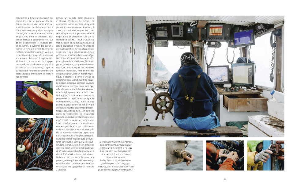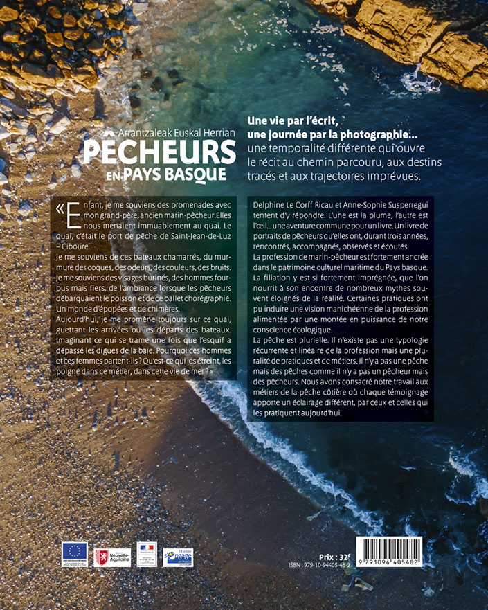 Kepa Etchandy, photographe professionnel, auteur d’images reflétant l’âme de ce pays, parcourt inlassablement et par tous les temps les chemins des sept provinces de l’Euskal Herri. Au fil du temps, il a constitué une banque d’images riche de près de 80 000 photographies. Col aborateur occasionnel d’agences de presse régionales et nationales, il est aussi photographe-rédacteur pour la presse magazine. De nombreux ouvrages ont été édités présentant la diversité de son travail photographique, dans « Au pays des Basques - Histoires & Voyages » il est également l’auteur des textes. 1907, avec la commercialisation du procédé autochrome des frères Lumière, il devient enfin possible de photographier le monde en couleurs. La plaque autochrome se diffuse largement auprès des amateurs et règne en maître dans le domaine de la couleur jusqu’à l’apparition de nouvelles technologies plus performantes dans les années 1930 (Kodachrome, Agfacolor). Fruit d’une collaboration entre les musées basques de Bayonne et de Bilbao, Le Pays Basque en couleurs - Autochromes, 1907-1935, offre une synthèse inédite sur ce premier âge de la couleur en Pays Basque, de part et d’autre de la frontière. Sélectionnées à l’issue d’une longue enquête dans de nombreuses collections publiques et privées, les 270 autochromes présentées dans cet ouvrage dressent un portrait saisissant du territoire à l’aube du XXe siècle. Originaire du Pays basque, Delphine Le Corff Ricau est titulaire d’un DEA en et sociétés actuelles, ses recherches universitaires menées au sein de l’université Michel de Montaigne à Bordeaux, se consacrent à l’étude de l’inconscient optique anthropologique de l’image photographique. Elle intègre ensuite une agence de photographes et graphistes à Paris en tant que chargée de production, avant de rejoindre le Pays basque où elle occupera les postes de chargée de communication et de rédactrice au sein d’une collectivité territoriale. Petite- lle de marin-pêcheur, son premier ouvrage «Pêcheurs en Pays basque» est un hommage à tous les gens de mer. Anne-Sophie Susperregui est photographe professionnelle. Native de Saint-Jean-de-Luz, elle manifeste dès l’enfance un attachement profond à l’océan, l’amenant à devenir océanographe dans la première partie de sa vie professionnelle. En 2011, elle quitte la recherche scientifique pour se consacrer pleinement à sa seconde passion : la photographie. Ses photosreportages, portent sur l’humain, dans sa pluralité et son authenticité. Par le biais de cet ouvrage, elle réunit en n ses deux passions et rend hommage à ses femmes et ses hommes qui font battre le coeur du port de Saint-Jean-de-Luz – Ciboure. Avec Kepa Etchandy,